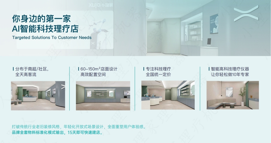 小理家不仅在技术上实现了突破,还在商业模式上进行了创新。通过智能理疗机器人,小理家从根本上改变了传统理疗门店的经营模式。传统门店依赖人工服务,存在成本高、标准化难、效果慢等问题,而小理家的智能理疗机器人则能够实现全国统一价格和服务标准,不依赖大单销售,专注于复购和用户体验的提升。小理家的门店采用年轻化、开放式场景设计,打破传统行业的老旧装修风格,全面重塑用户体验感。门店分布于商超和社区,全天高客流,专注于科技理疗,全国统一定价,智能高科技理疗仪器让用户轻松享受专业级理疗服务。